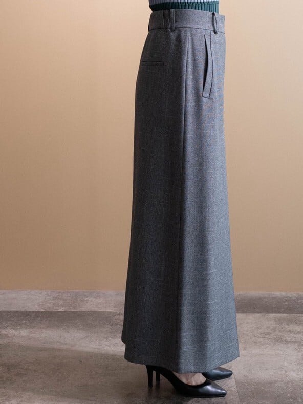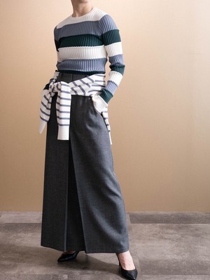 一見、パンツの様に見えるデザインですが、前に深めのタックが入る事で