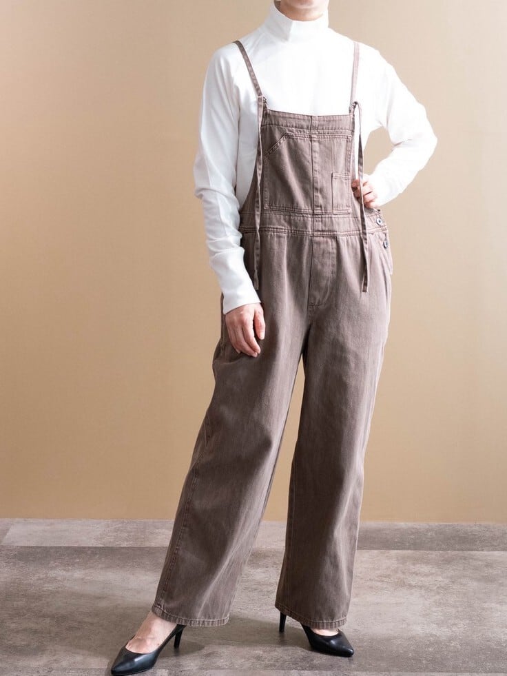 デニム素材を使用したスタイルが綺麗に見えるサロペットパンツです。