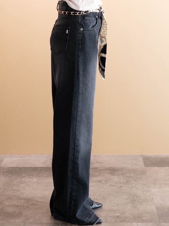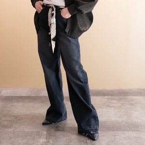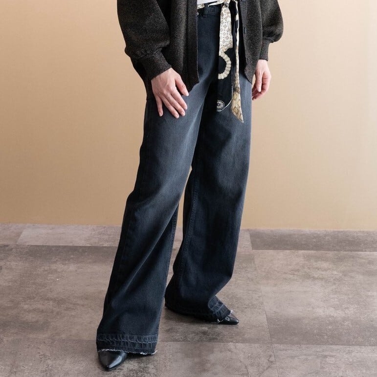 裾が切りっぱなしとなり丈の長さは長めで穿いていただくことで