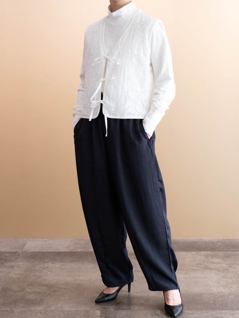 非常に軽い質感で、これからの時期にスタイリングが楽しめるベストです。