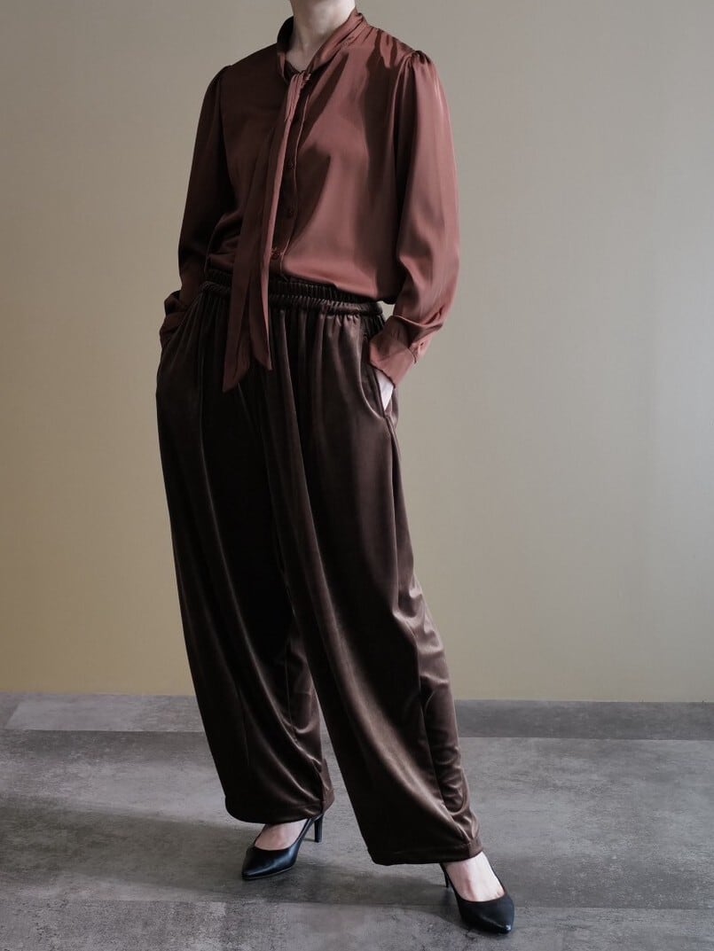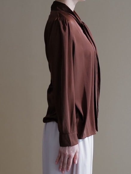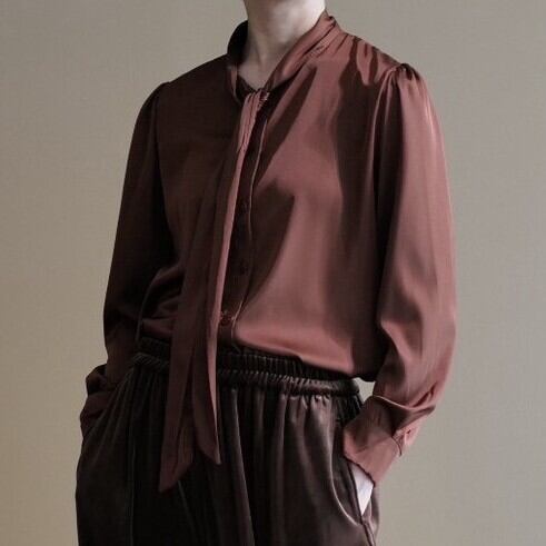 ★サテンリボンブラウス(ブラウン)