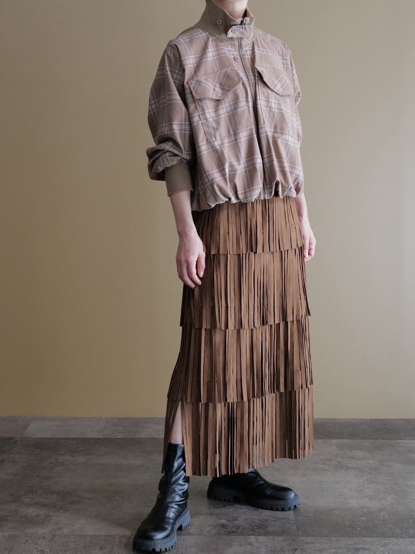 フリンジがアクセントになり存在感を醸し出すも、カジュアルにならず