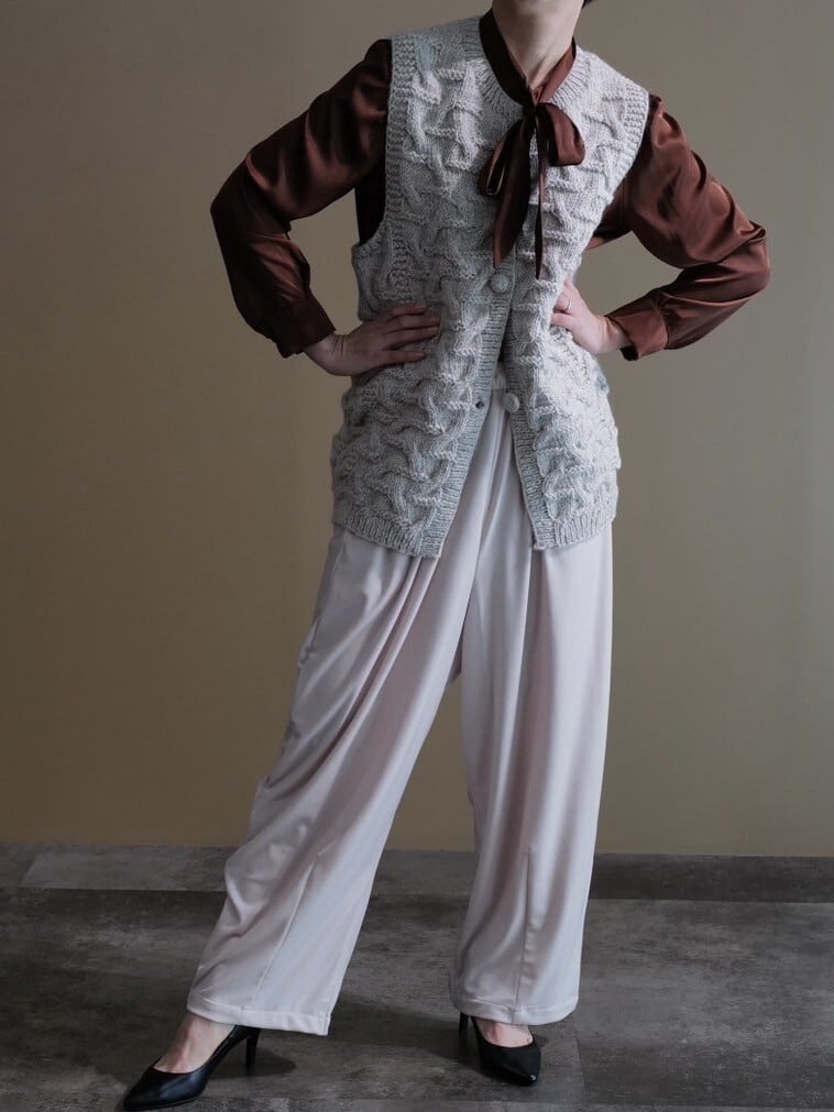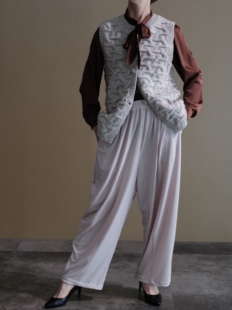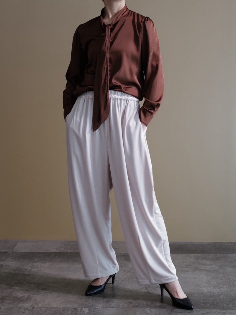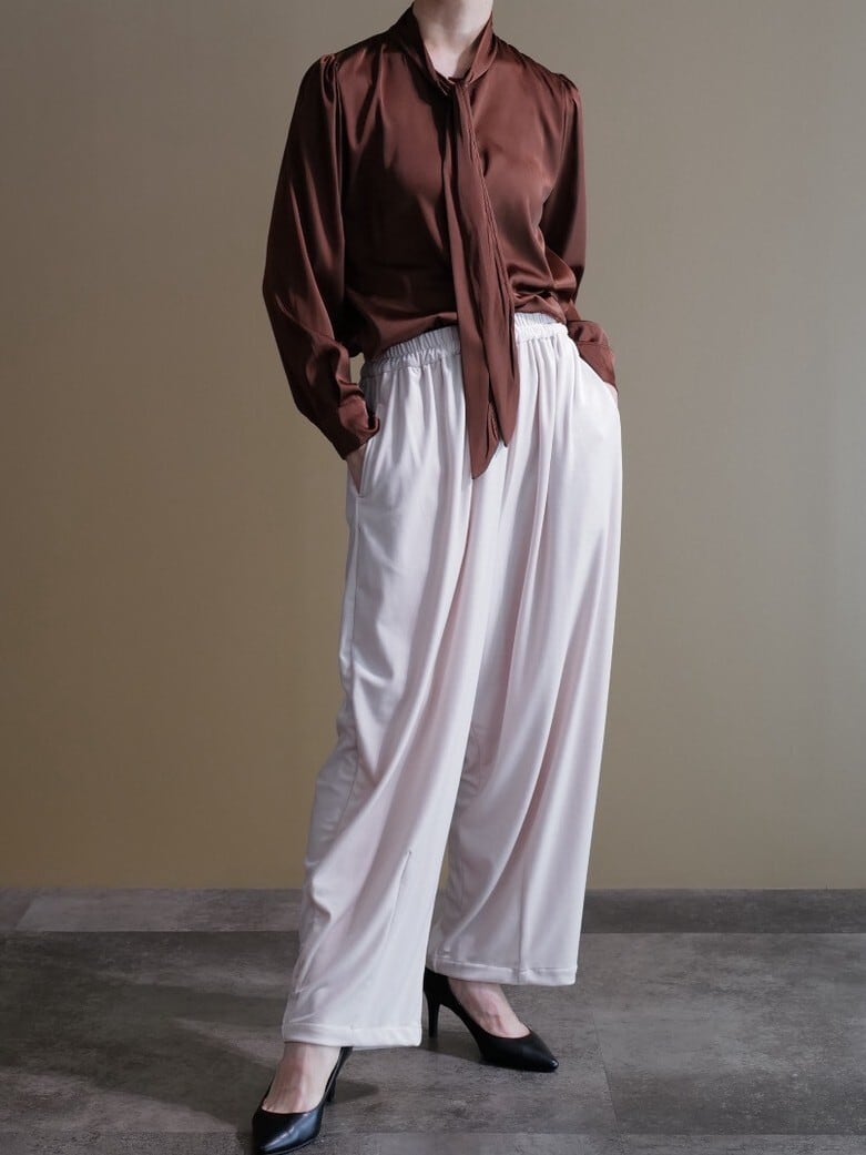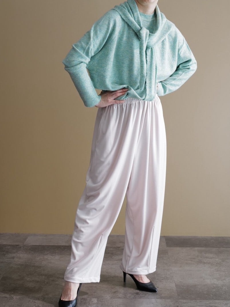 裾にダーツを入れているので、程よく裾に掛けて絞られるも