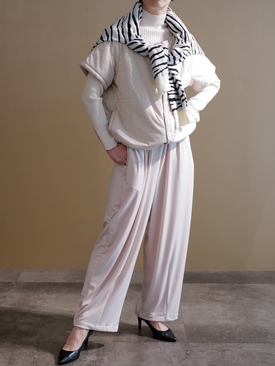 全体的にゆったりとしたシルエットながら、絶妙に身体のラインを