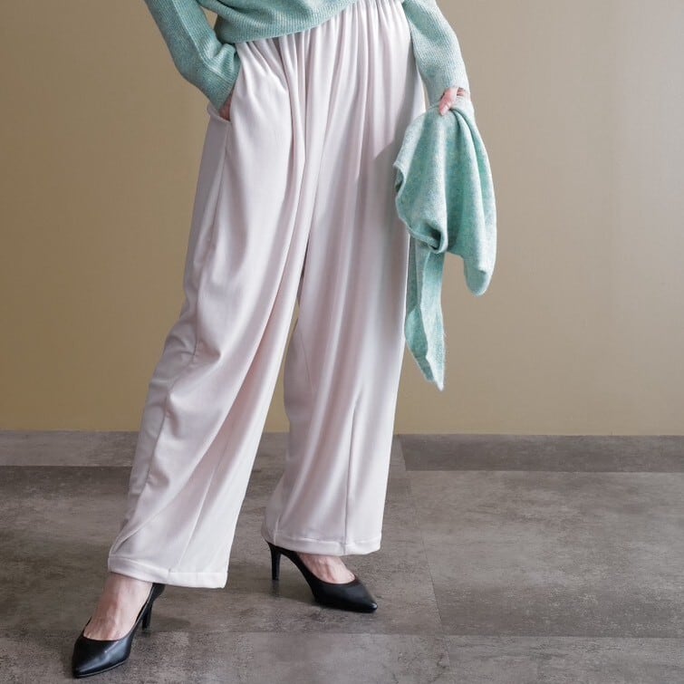拾わないので幅広い体型の方でもすっきりと穿いていただけます。