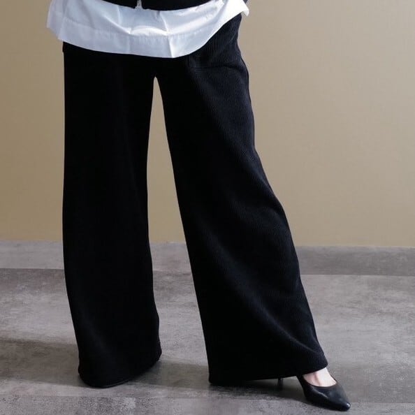コーデュロィストレッチワイドパンツ(ブラック)