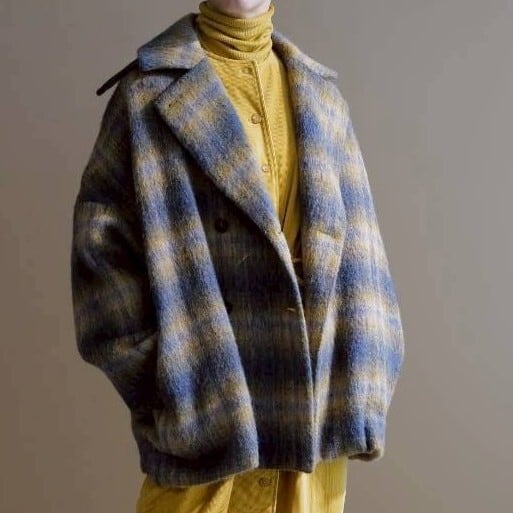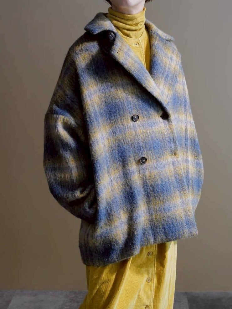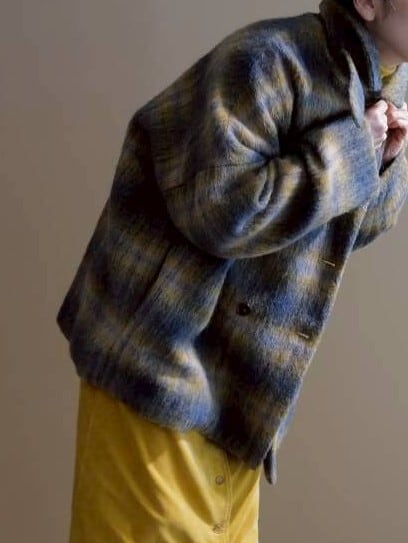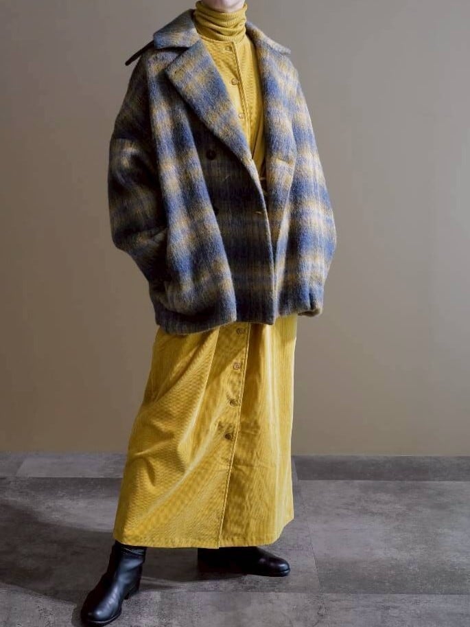 チェックシャギーコート(イエロー×ブルー)