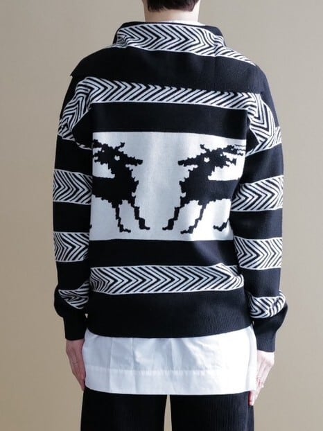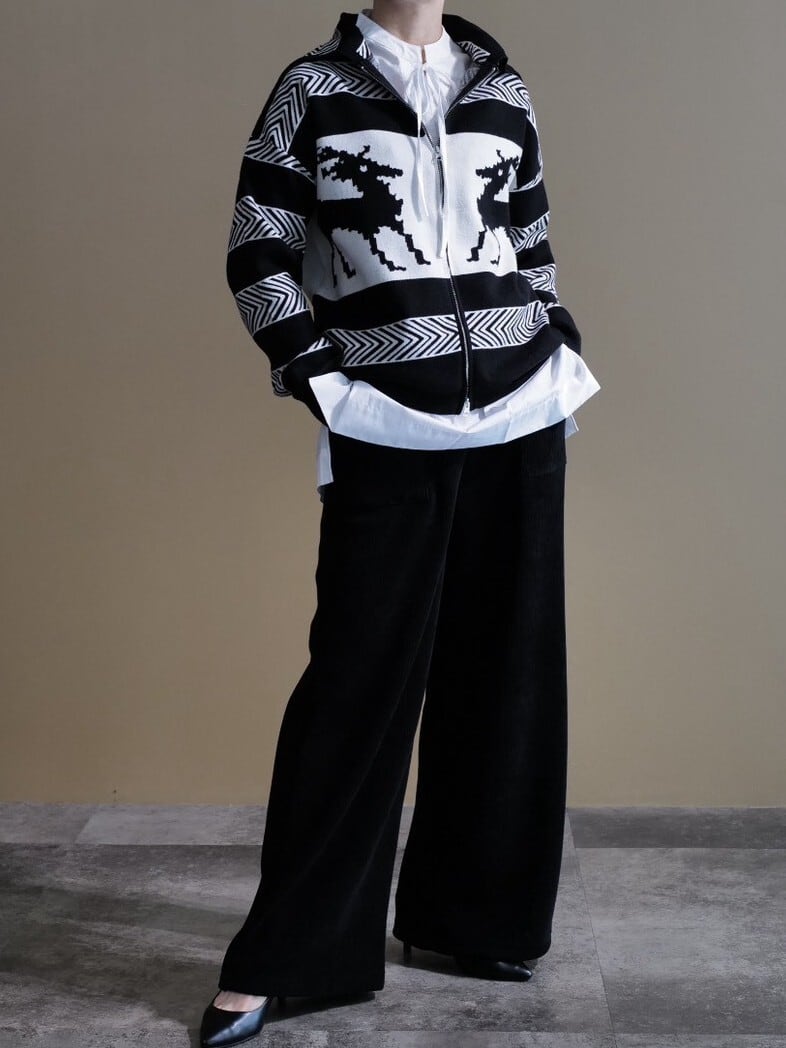 ★デザインジップカーディガン(ホワイト×ブラック)