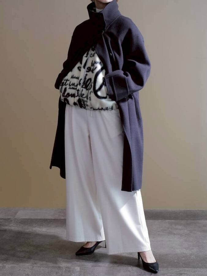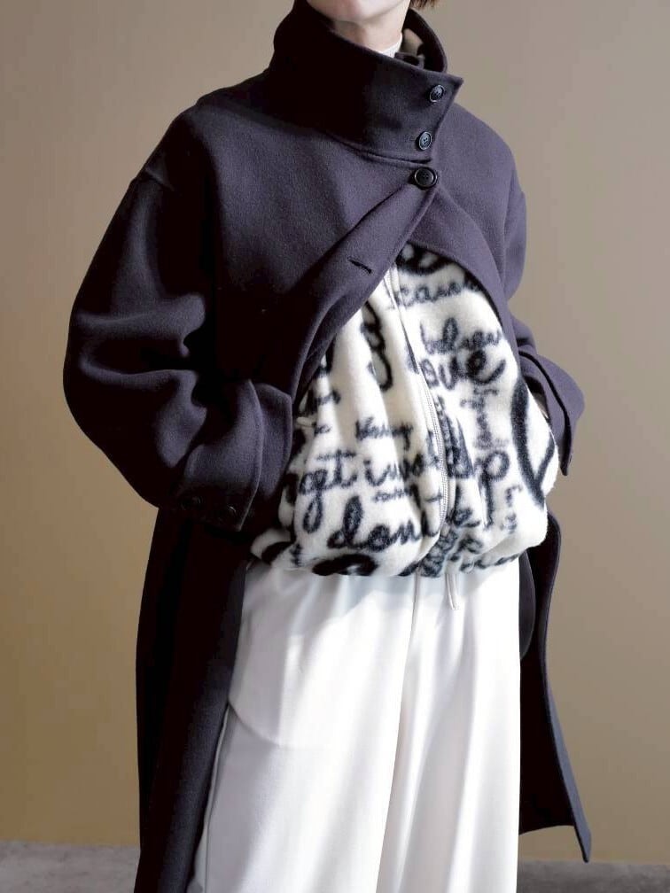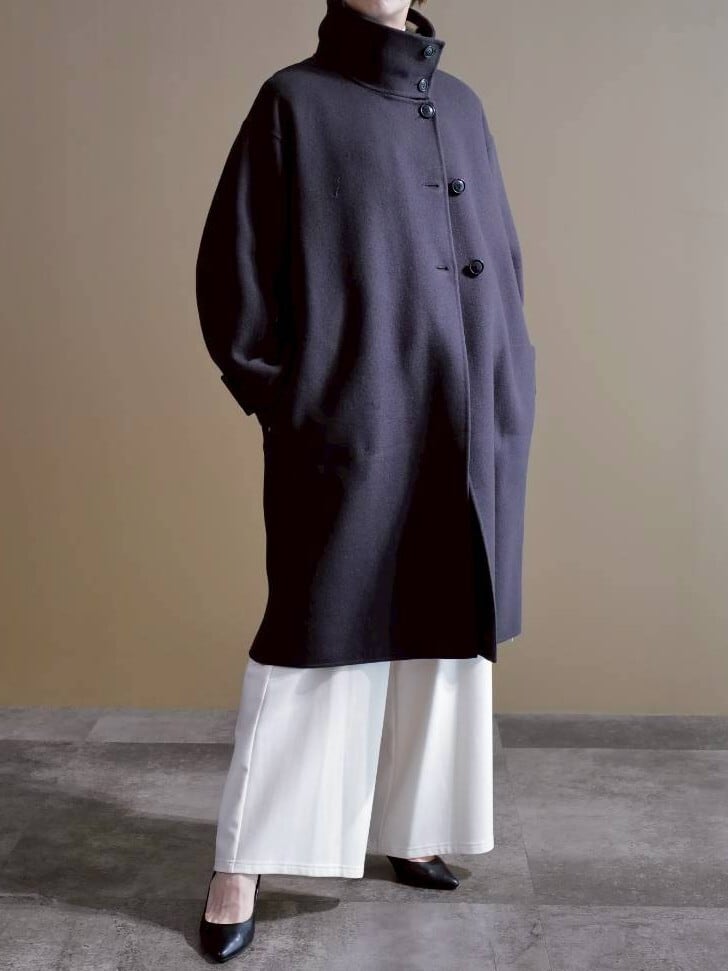 大きめの襟が開けて着た時も存在感があり、立てて着ると程よく
