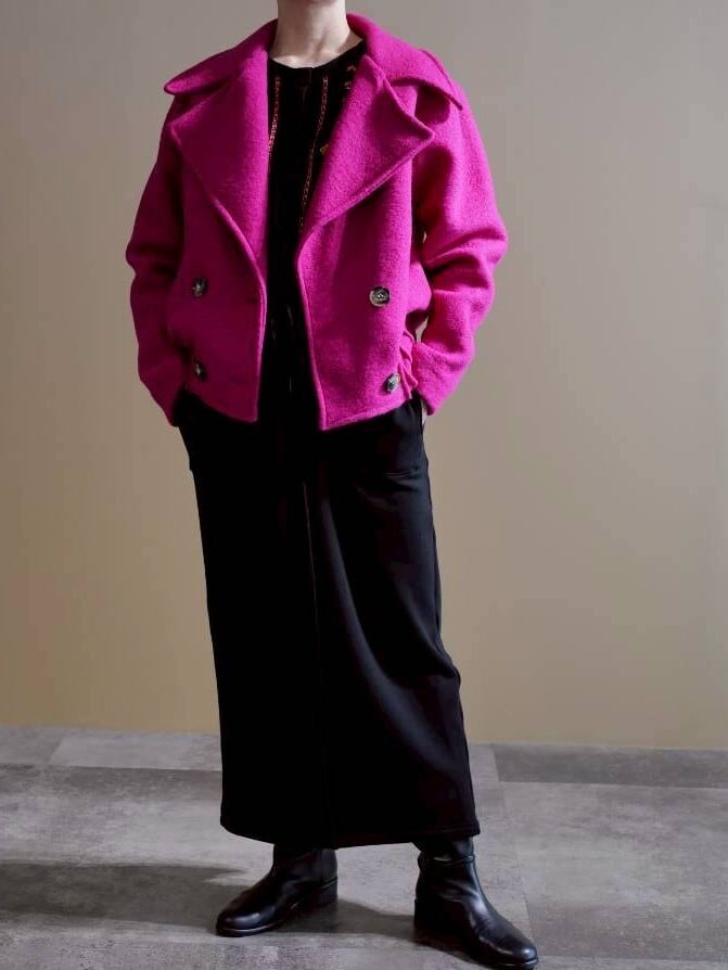 毛足が短いシャギー感ある圧縮仕様のコンパクトなコートです。