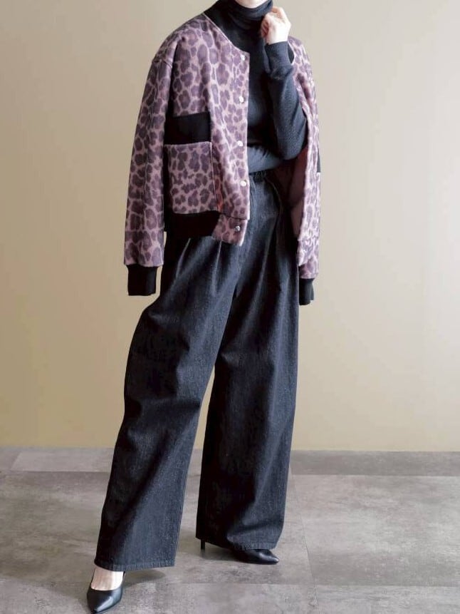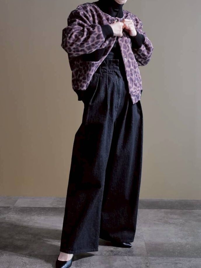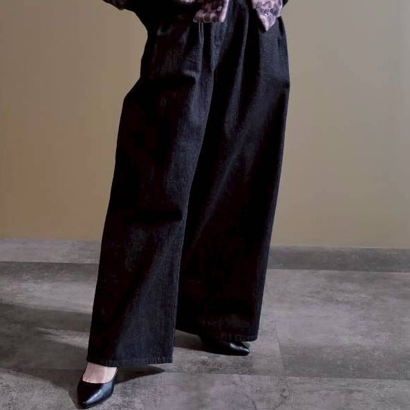 ワイドシルエットが特徴的で、足元をヒールと合わせるとエレガンスに