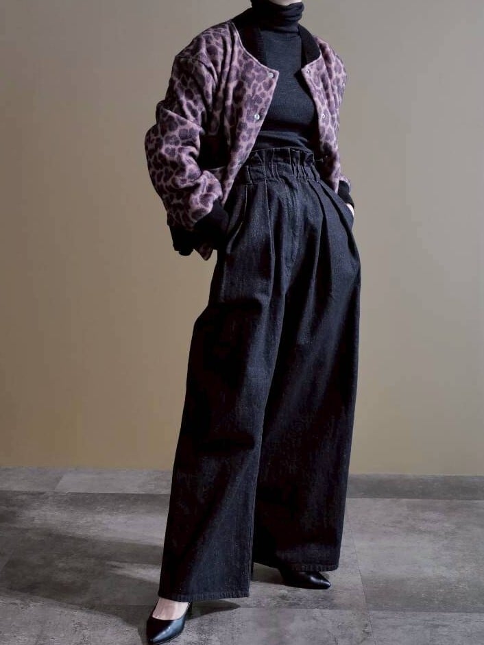 着丈は短めながら、緩いシルエットが特徴的でボトムスも、パンツでも