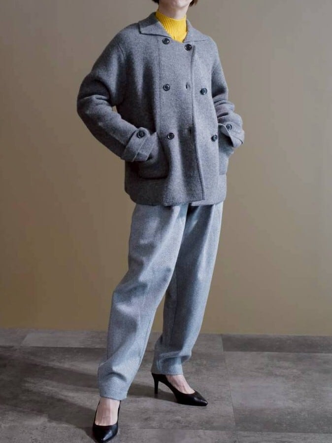 ダブルニットショートコート(グレー)