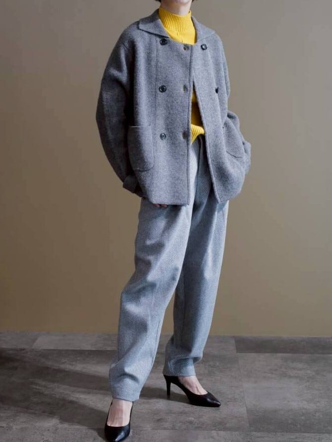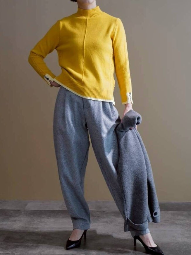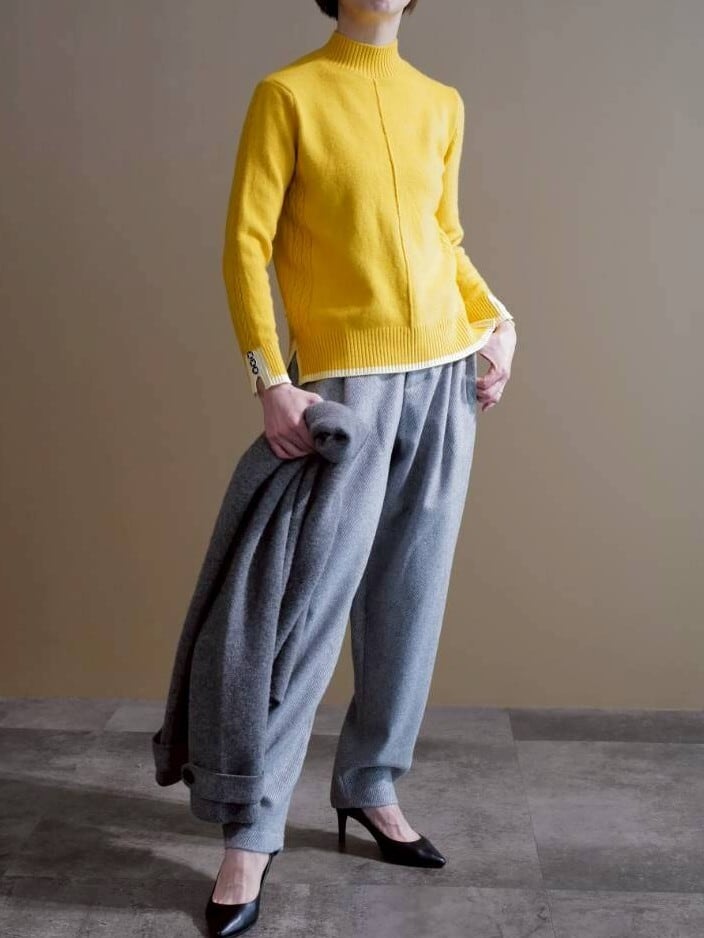★袖釦ハイネックニット(イエロー)