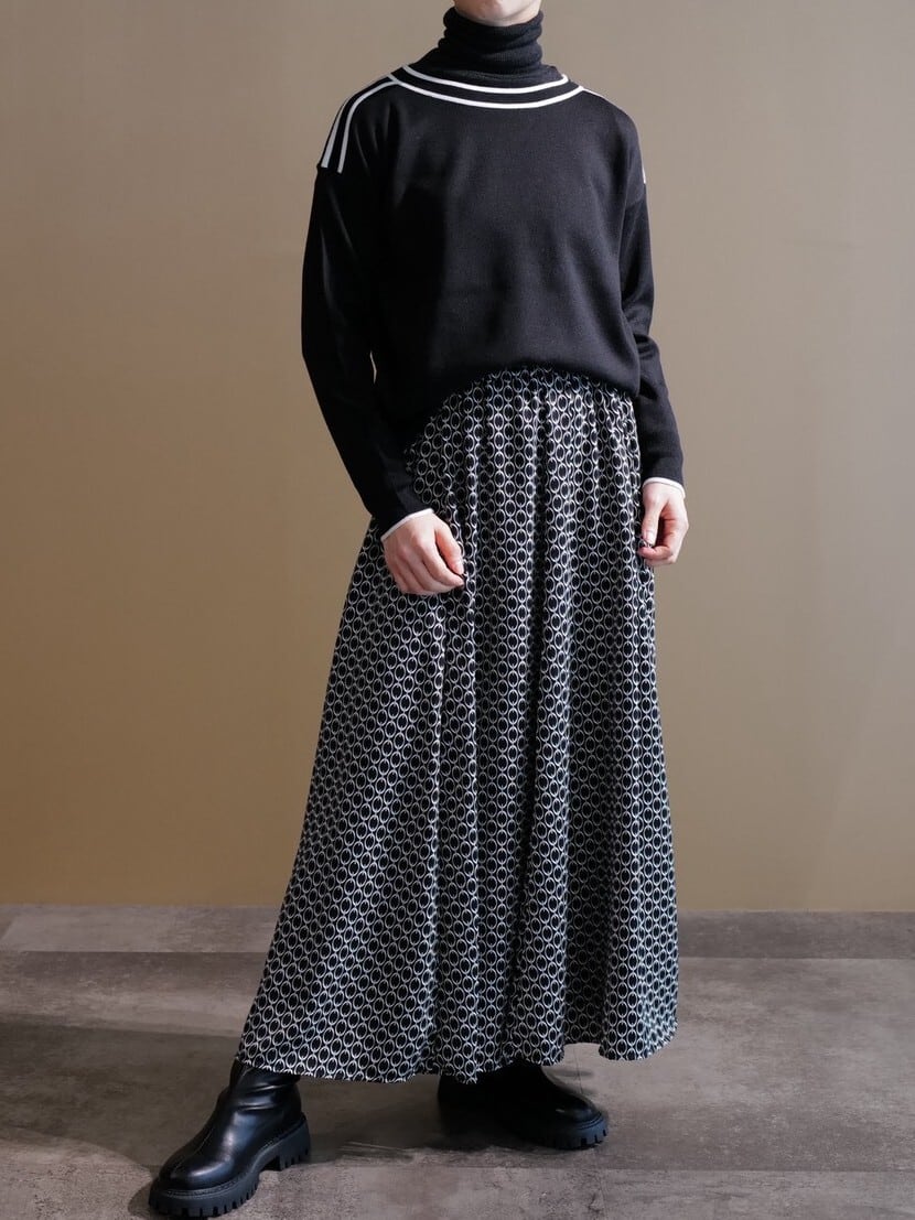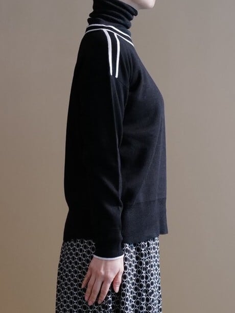 首回りと肩回りにラインを敷いているのがアクセントになるのと