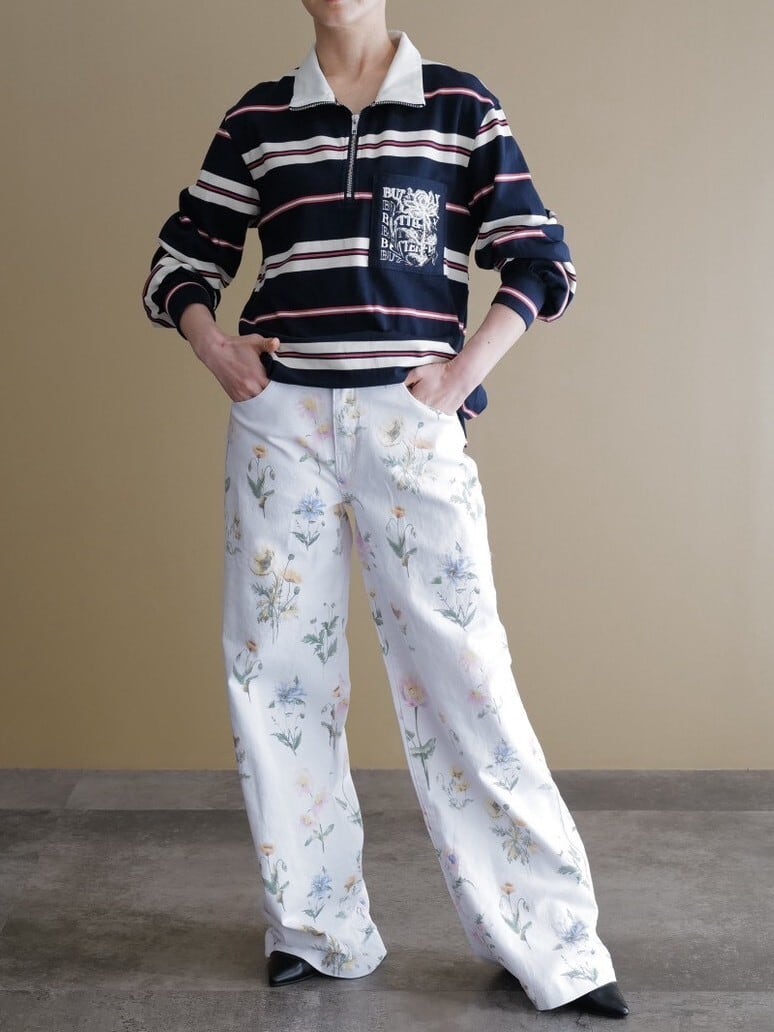 折り曲げると色違いになるなど、個性的なデザインのラガーシャツです。