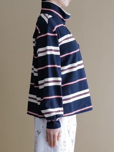 ボーダー柄の配色がアクセントになるのと、襟の配色も