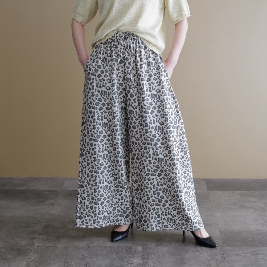 ★レオパードプリントワイドパンツ(オフベージュ×グレー)