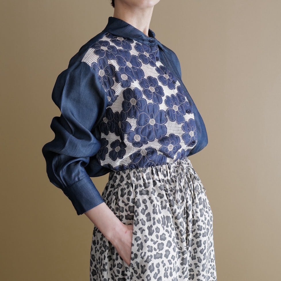 ★シャンブレーフラワーシャツ(ブルー)