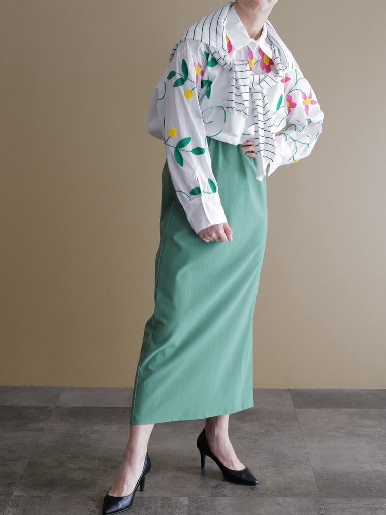 <商品詳細> 手洗い:可 裏地:なし ポケット:なし ウエスト:ゴム <brand> CLOCHE japan made in japan <素材> ナイロン90% ポリウレタン10% <size> ウエスト32㎝ 着丈89㎝ ※162㎝着用 ※置き寸法です <attention> ・サイズの計測に多少誤差がある場合がございます。あらかじめご了承くださいませ。 ・出来る限り実物に近い色で撮影をしておりますが、多少誤差がある場合がございます。 あらかじめご了承くださいませ。