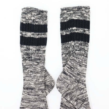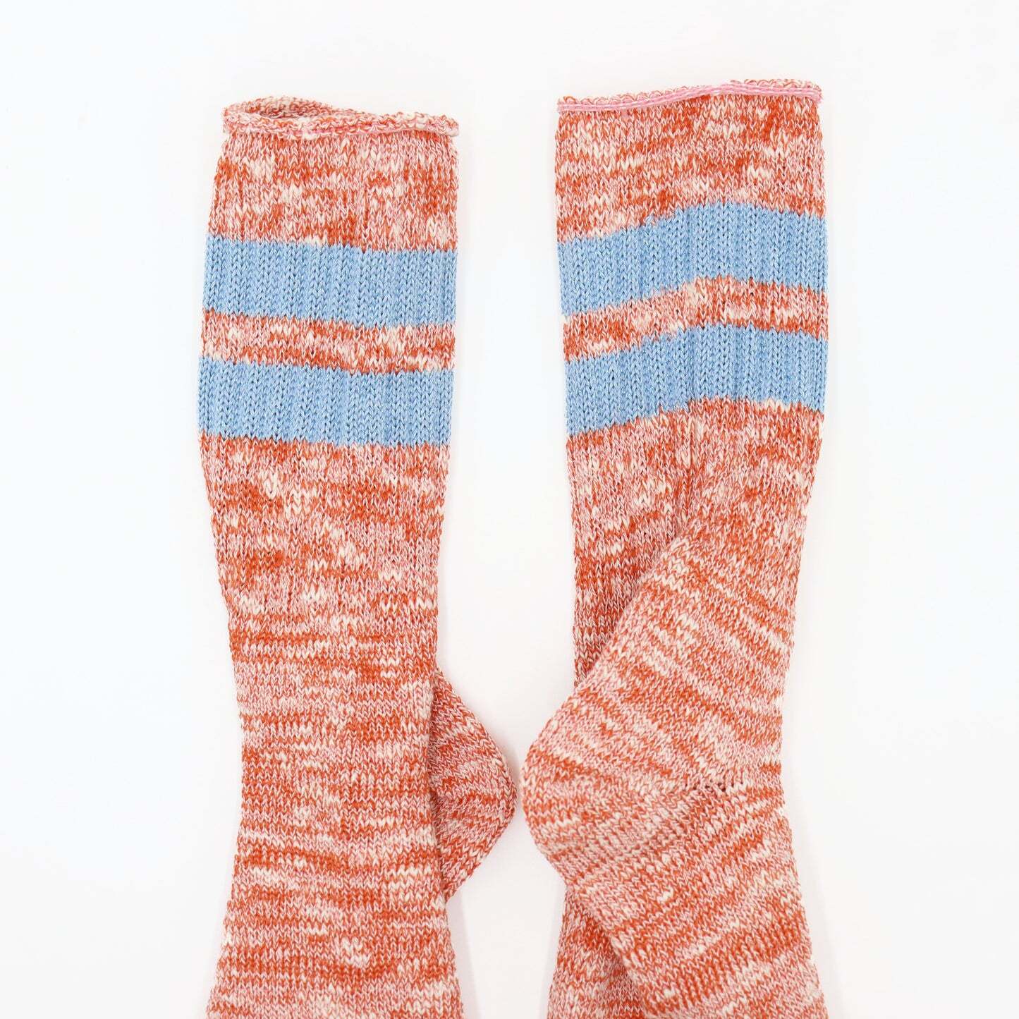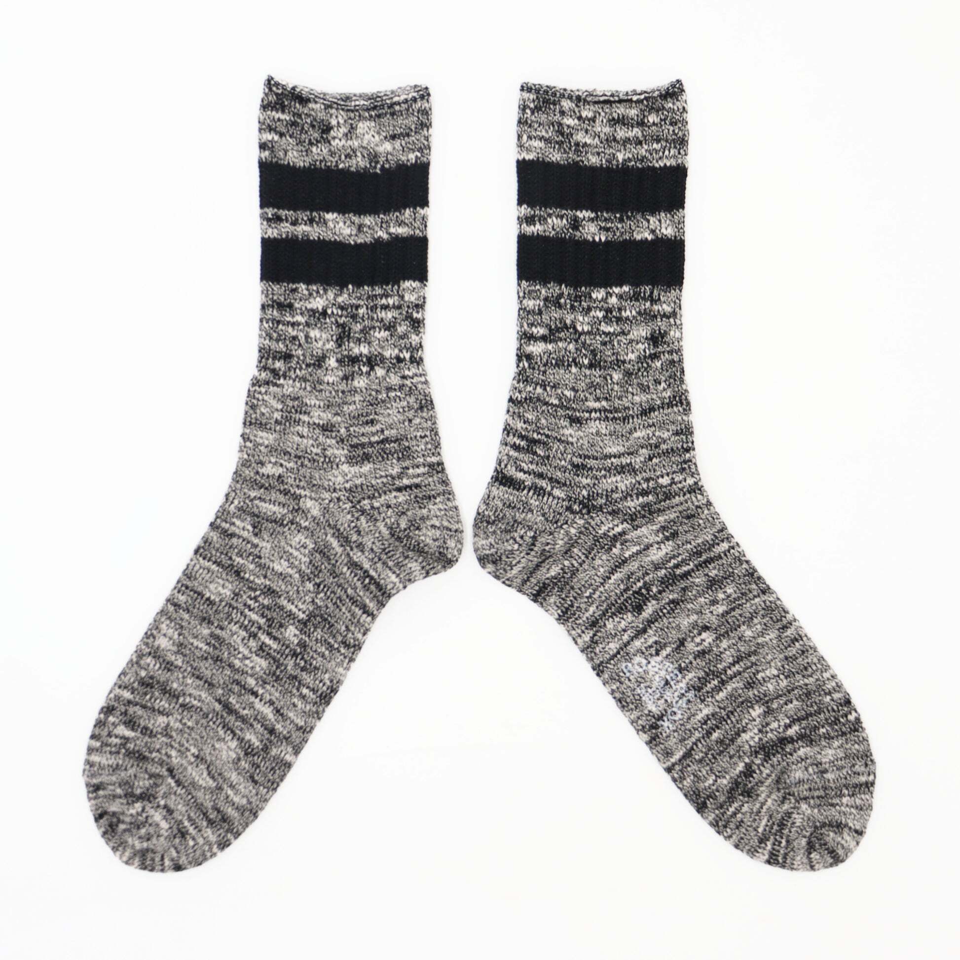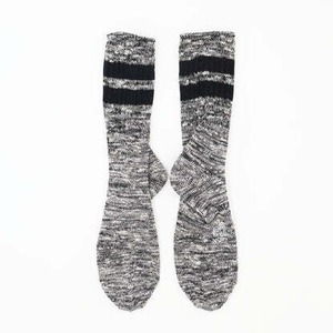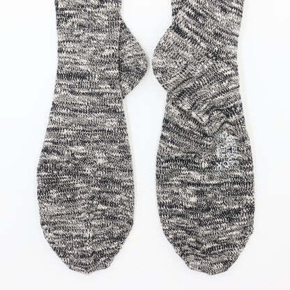 旧式のパイル機で丁寧に編み立てた、風合い豊かなソックス。ベースとなるコットン糸にスラブ糸をミックスすることで、程よい凹凸感とナチュラルな表情を生み出しています。