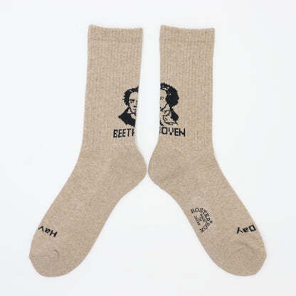 ヴィンテージ市場でも人気の高い音楽家シリーズから、ベートーベンをモチーフにしたソックス。