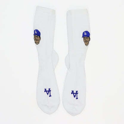 MLBの世界観とレジェンドの存在感をさりげなく落とし込んだ、遊び心あるデザインソックス。