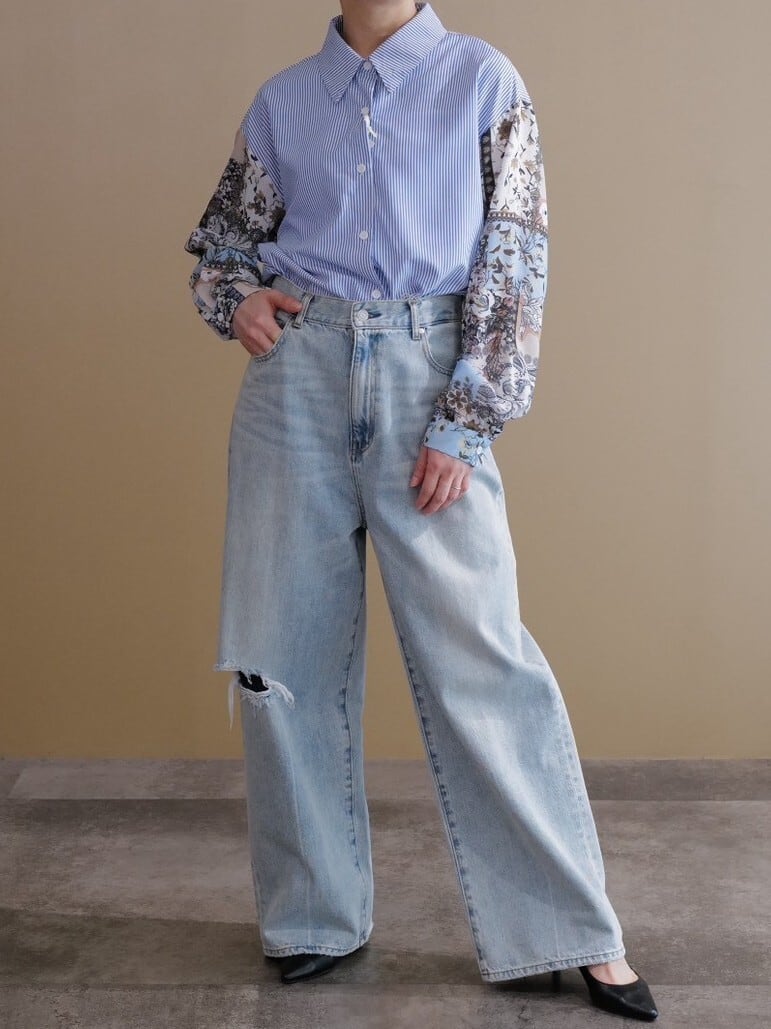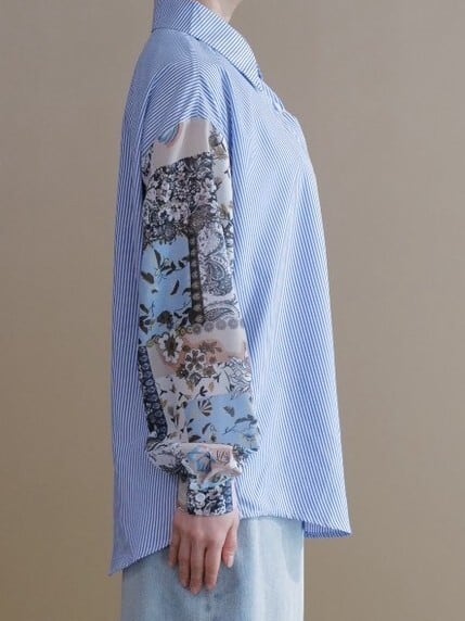 ★コンビネーションストライプブラウス(ネイビー)